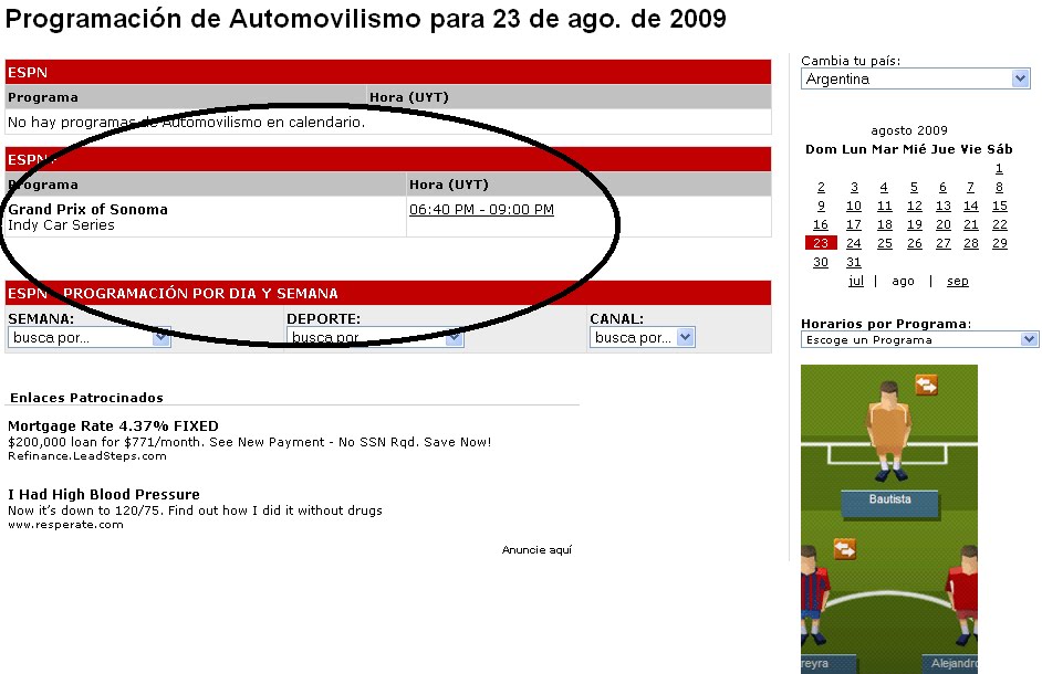 ESPN+ Transmitira El GP De Sonoma Bruno Tarulli hace 16 años Anuncios La Transmicion Sera En Vivo Para Toda Latinoamerica Con Los Relatos De Andres Agulla Y Con Los Comentarios De Alex Pombo. La Transmicion Comenzara Alas Hs 18:40 Horario De Argentina Comparte esto en: Email a link to a friend (Se abre en una ventana nueva) Correo electrónico Share on Facebook (Se abre en una ventana nueva) Facebook Share on X (Se abre en una ventana nueva) X Share on Pinterest (Se abre en una ventana nueva) Pinterest Share on WhatsApp (Se abre en una ventana nueva) WhatsApp Imprimir (Se abre en una ventana nueva) Imprimir ESPN+ Transmitira El GP De Motegi En VivoFecha16 de septiembre de 2009ESPN Transmitira El GP De Miami En VivoFecha9 de octubre de 2009Saint Petersburg 2010: Clasificación en directoFecha27 de marzo de 2010