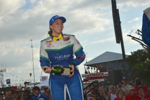 En el podio hubo presencia femenina porque la suiza Simona de Silvestro, del equipo KV Racing Technology, llegó segunda. Este fue el primer podio de Simona en la categoría más rápida del mundo. La tercera posición fue para el inglés Justin Wilson (Dale Coyne Racing), que por cuarta vez en el año subió al podio.