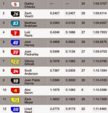 Matthew Brabham, que también corre para el equipo Andretti Autosport, fue el mejor debutante del día y resulto tercero. Cuarto fue otro debutante y es el brasileño Luiz Razia (Schmidt Peterson Motorsports), que dejo Europa para correr en la Indy Lights. Jack Harvey, compañero de Razia, finalizó quinto en su primer entrenamiento oficial.