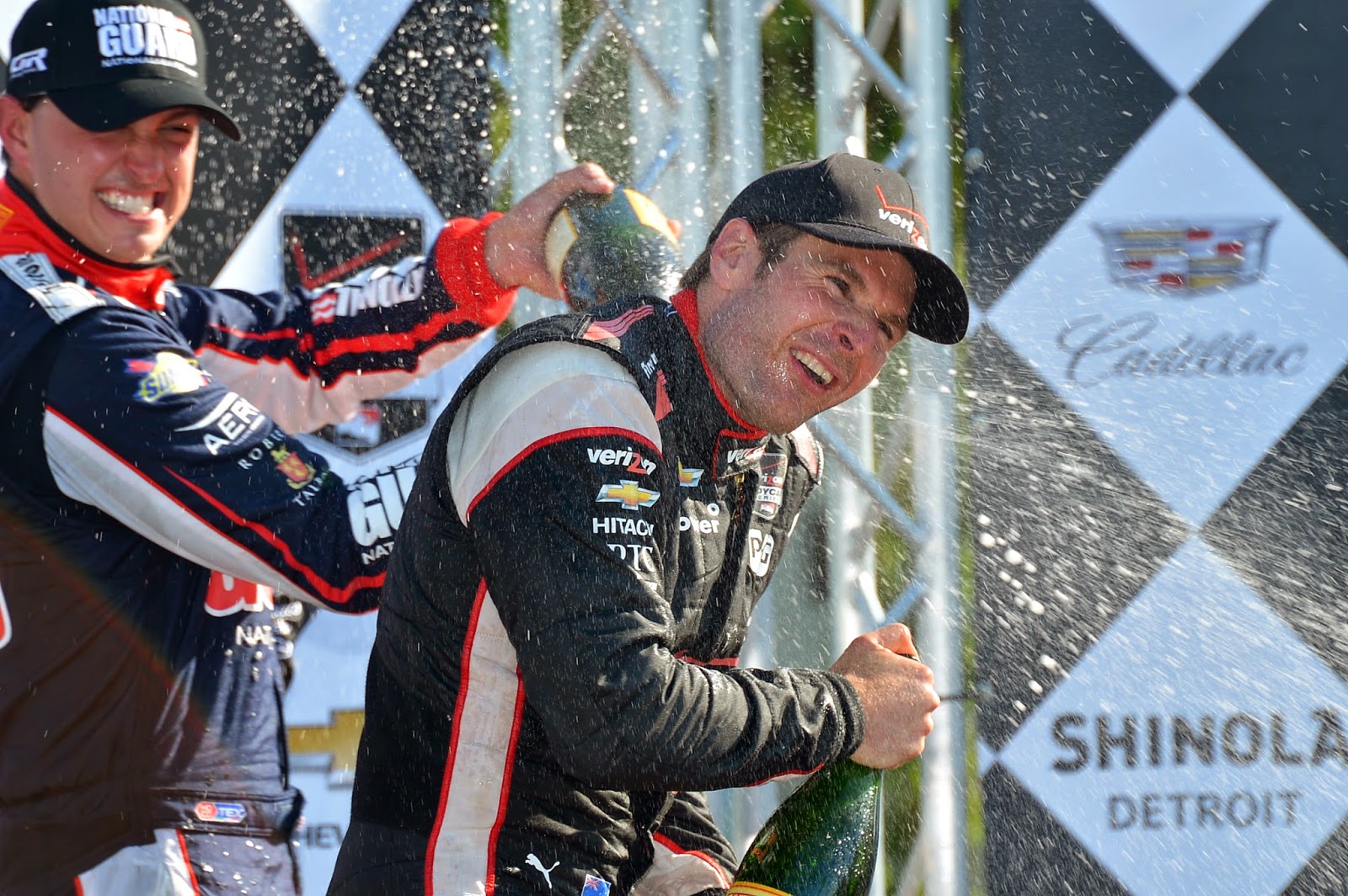Justin Wilson (Dale Coyne Racing), que también estuvo complicado en la clasificación, salvó el día con un cuarto lugar. Quinto fue el gran perdedor, Helio Castroneves, que buscaba su tercera victoria en Belle Isle.