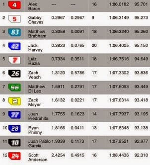 La primera máquina del equipo campeón aparece recién cuarto y es el del inglés Jack Harvey, que es otro de los debutantes. Otro piloto de Schmidt Peterson Motorsports fue el quinto más veloz y es el brasileño Luiz Razia, que ya conoce la victoria en su primer año.