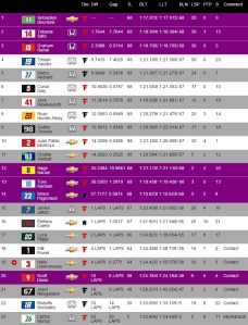 La carrera de este domingo marcó el primer abandono en 2015 para Dixon, Power y Castroneves y Carlos Muñoz, quien pasó de 11mo a 5to en cuestión de cinco vueltas antes de que su motor Honda dijera «basta».