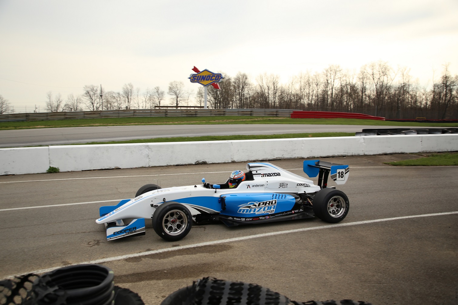 Joel Miller, piloto de fábrica de Mazda, participante en la serie IMSA e instructor de piloto y comisario en la USF2000 Series, hizo el shakedown del monoplaza el lunes pasado en el Autobahn Country Club de Joliet, Illinois, para manejar el jueves y viernes en el Mid-Ohio Sports Car Course.