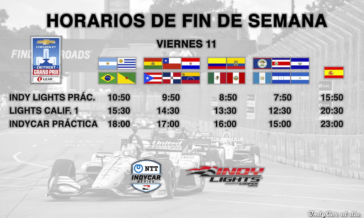 A la IndyCar le acompañan Indy Lights e IMSA durante el fin de semana. La bandera verde para la carrera del sábado ondeará a las 14 hrs, mientras que la del domingo saldrá a las 12:35 hrs (Tiempo Local- Este de Estados Unidos).