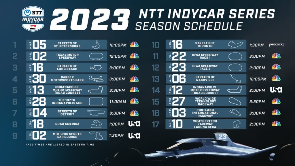 «Desde la perspectiva de la transmisión, nuestra temporada también comenzará con el pie derecho con siete carreras consecutivas en NBC para comenzar la temporada 2023 antes de otra carrera de NBC hacia el campeonato en Laguna Seca».
