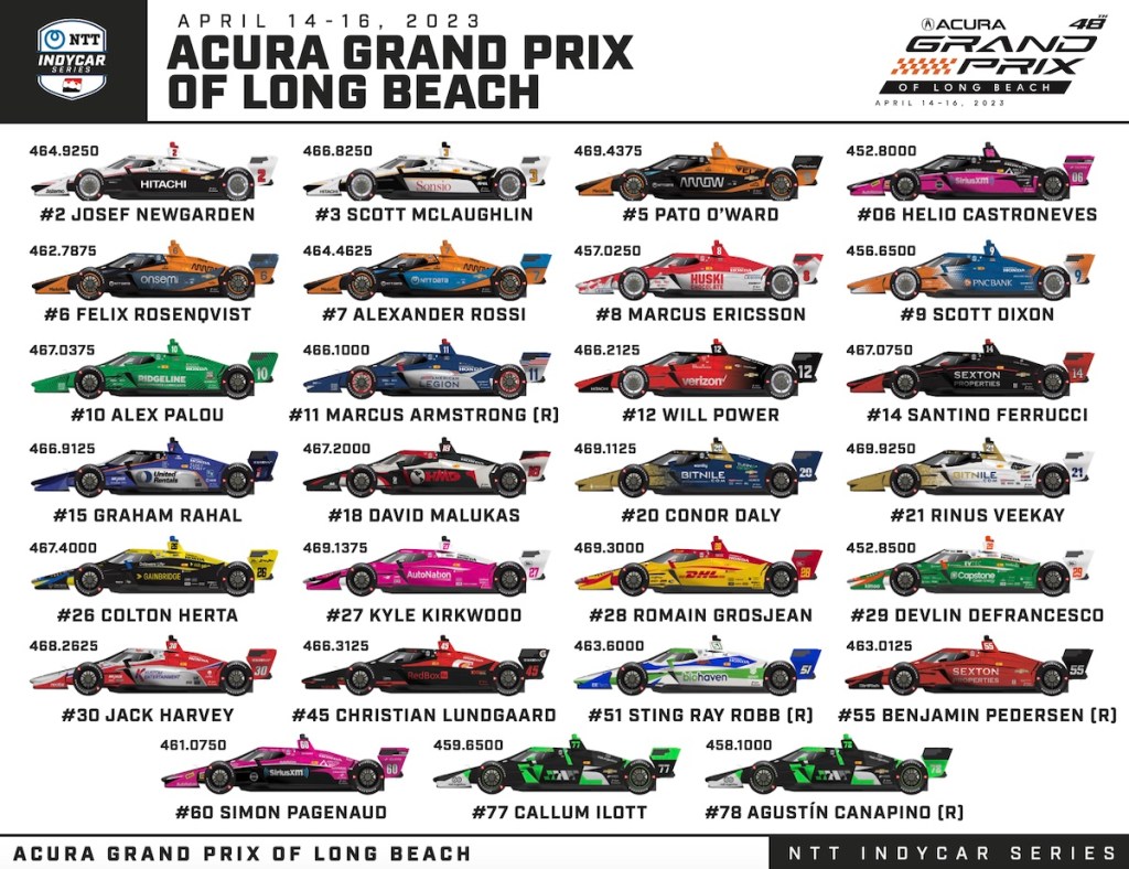 Los 27 autos que compiten de tiempo completo estarán en el Gran Premio de Long Beach, tercera fecha de la IndyCar 2023.