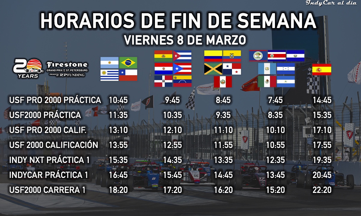 Cuentas y HT’s en Twitter: @GPSTPETE, @IndyCar, #FirestoneGP, #IndyCar